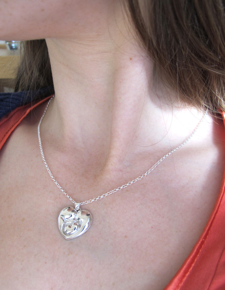 This handmade new Mom heart necklace is so loveable, just like your new baby. And a portion of sales goes to Family programs (more info below). Celebrate being a new mommy with this solid sterling silver New Mom gift with a gold plated baby AND custom engraving on the back! Being a new Mother is so much hard work, but has the best rewards so you should be proud of your new Family. Wear this Mommy pendant with pride! Makes the perfect Baby Shower Gift, or push present.