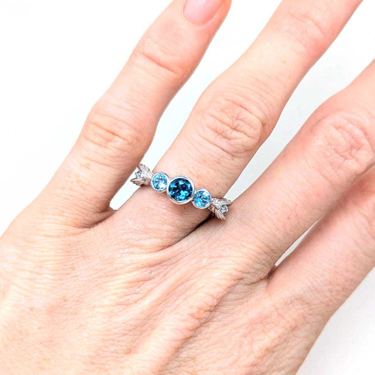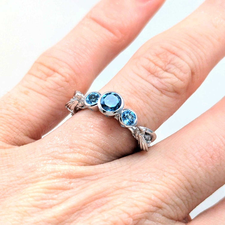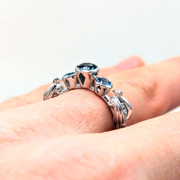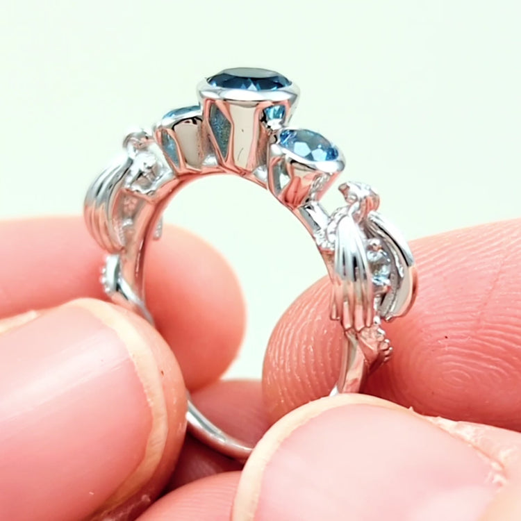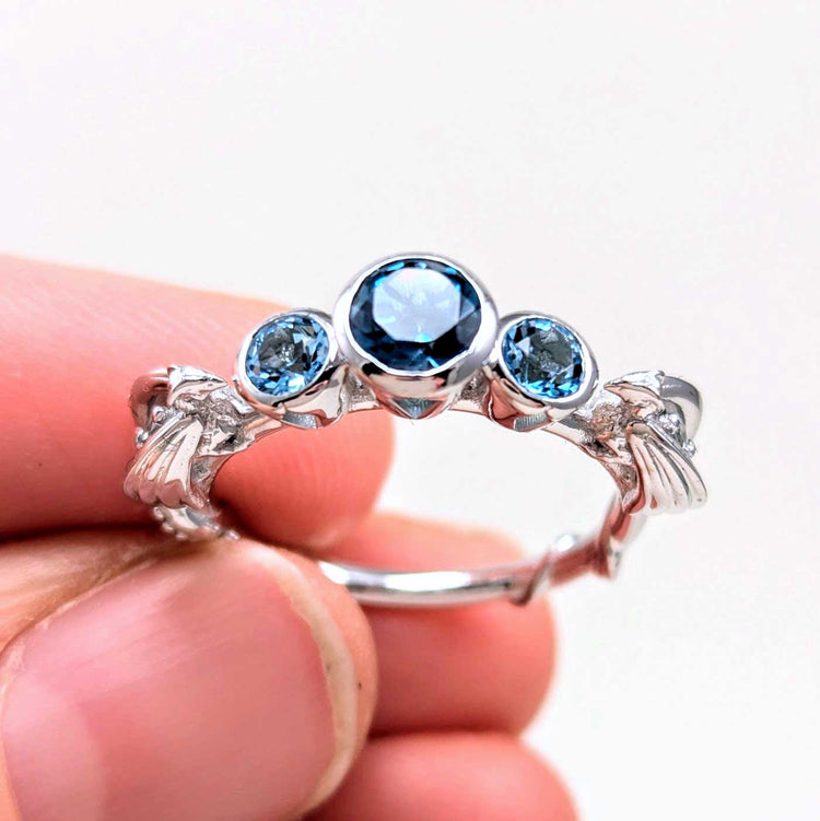 -Silver + Blue topaz and gold options comes with genuine blue topaz stones like the photos (Center is london blue, sides swiss blue, wings sky blue).