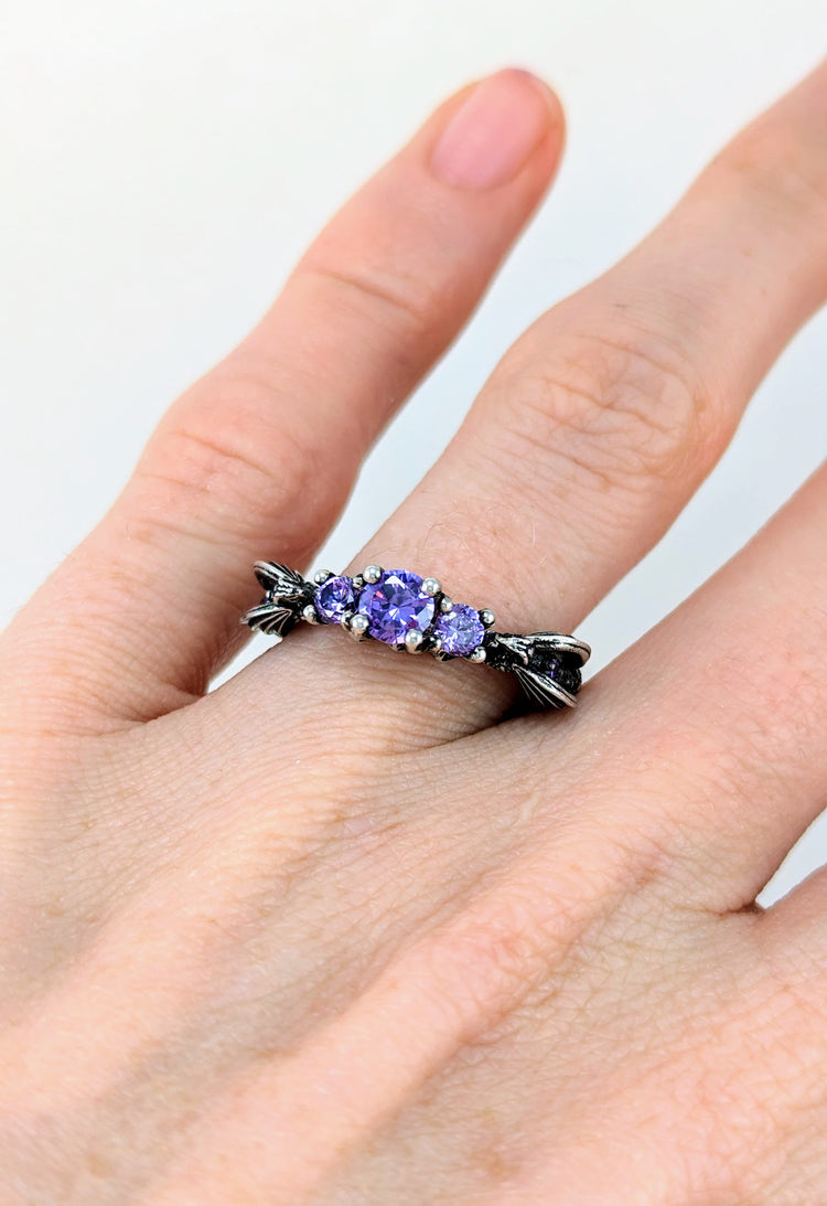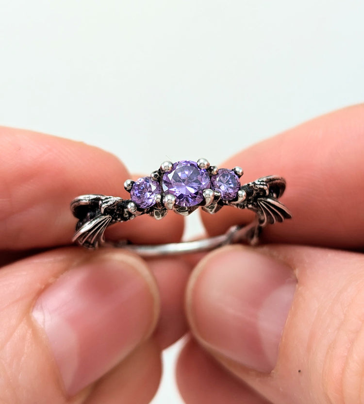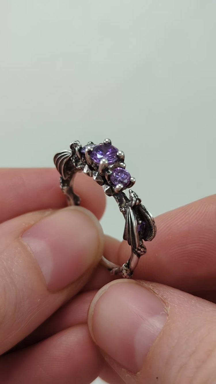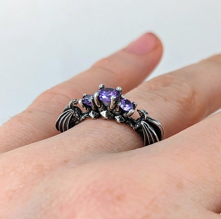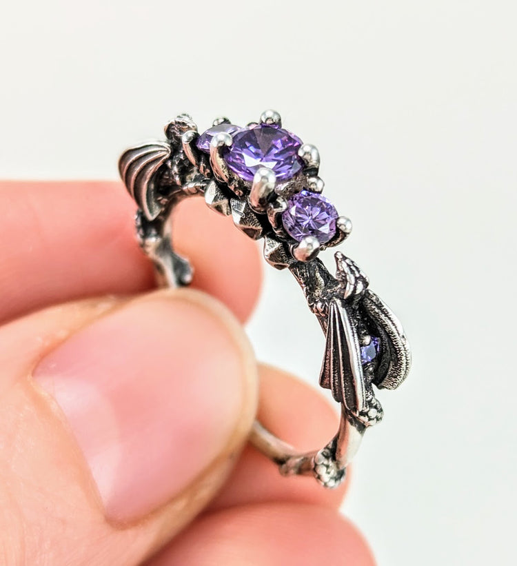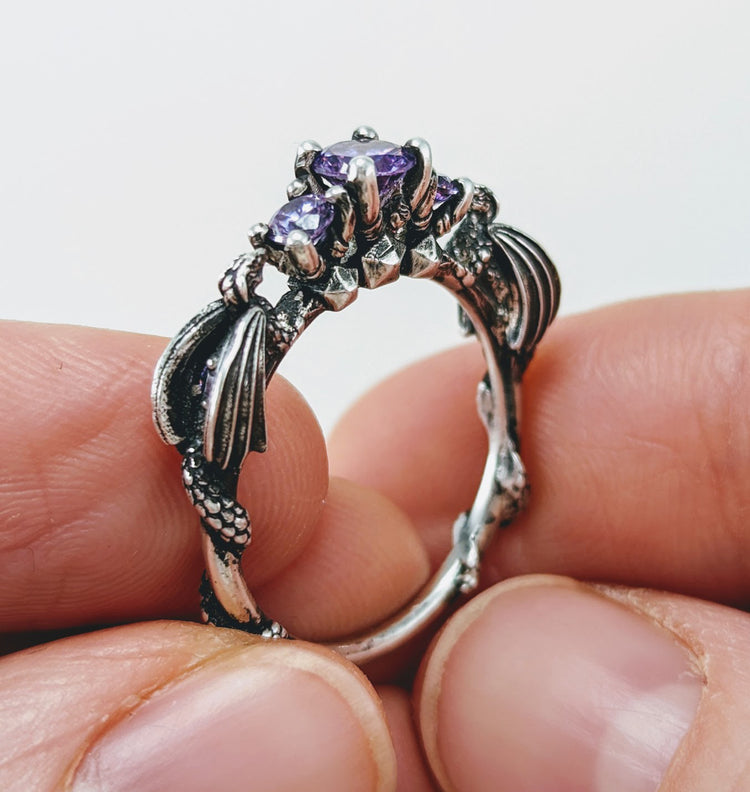 These dragons are nerding it up on game night with their collection of D20's and jeweled wings! It's the perfect DND engagement ring for a DnD superfan or gamer!
