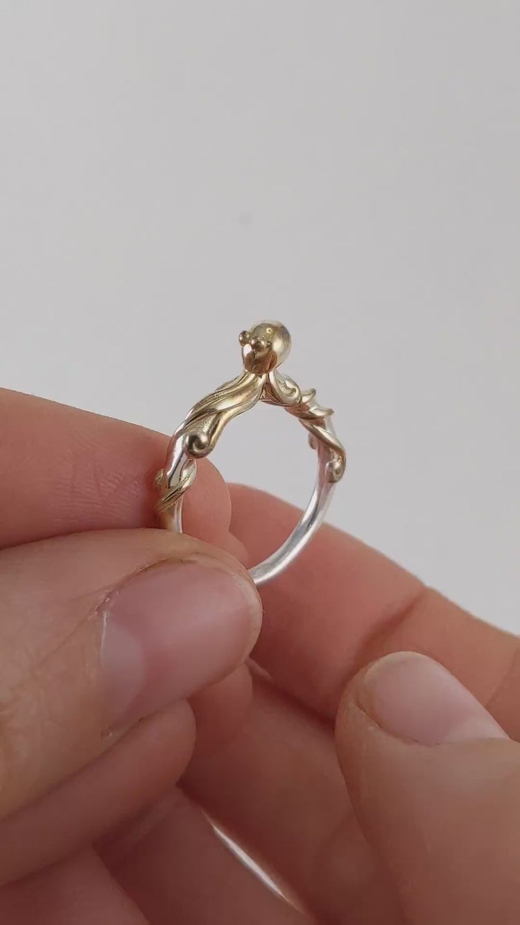 *Note: This listing is for 1 Octopus wedding band without a gemstone only. The photos that show two rings show the matching engagement ring. For my full collection of Octopus engagement and wedding rings view here: