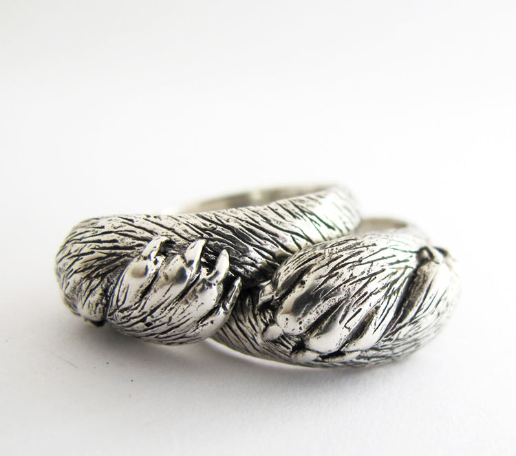 The paws are holding hands, making this the perfect sterling silver wedding band set. Choose your paw. Get a cat ring, wolf ring, dog ring, rabbit ring, or request an animal paw not shown in the photos. I can custom make any animal paw!