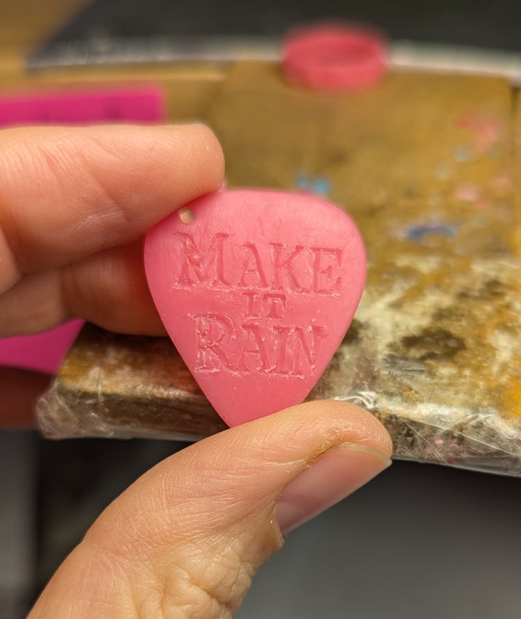 Make it Rain! This guitar pick has the real notes to Zelda's Song of Storms. You can choose to have your own favorite flute song from Zelda! Simply send me the notes or the name of the song and I will engrave it like this one! We can also engrave words on the back like in the other photos. We did 'Make it Rain' on the bak of this one, but misplaced the photos. I think it would be so neat to engrave your favorite Zelda tune! Just send me the notes and I will do it like this one with your choice of words on the back. :)