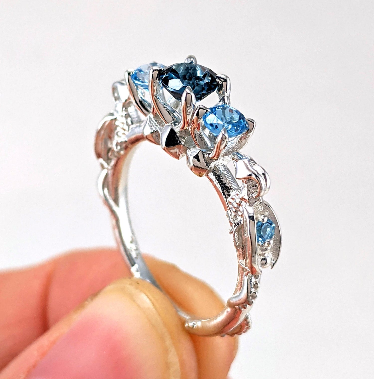 -Silver + Blue topaz and gold options comes with genuine blue topaz stones like the photos (Center is london blue, sides swiss blue, wings sky blue).